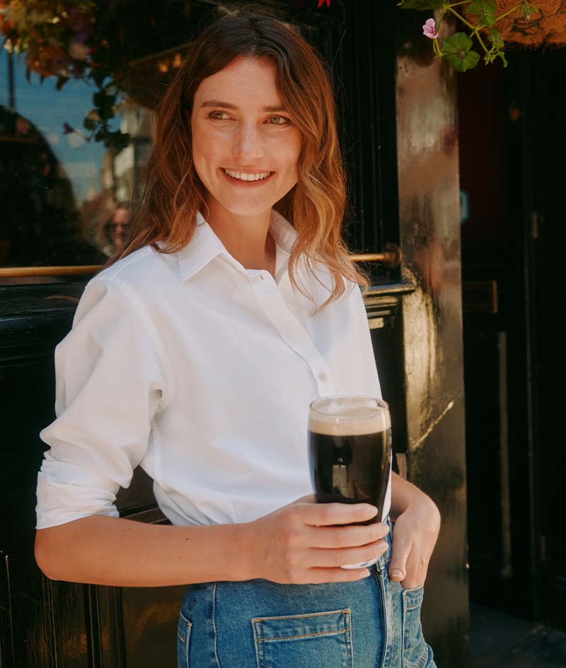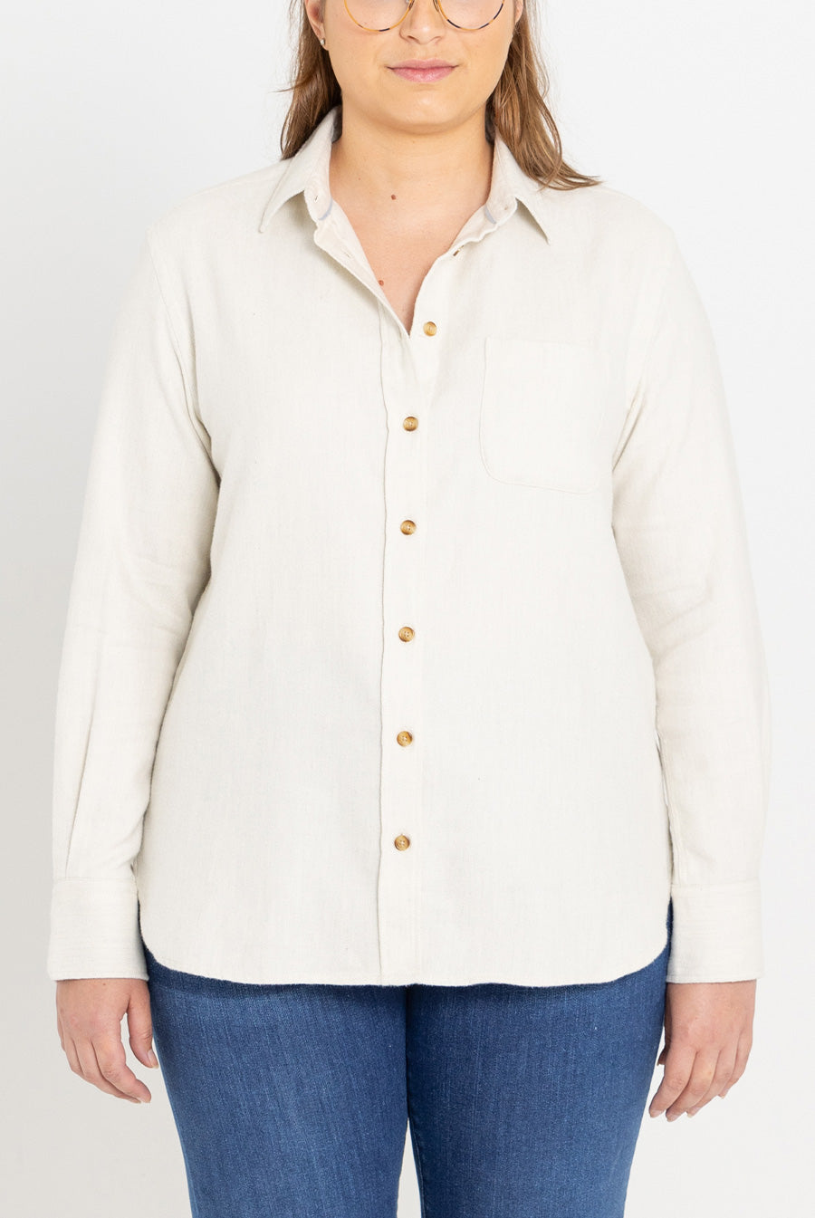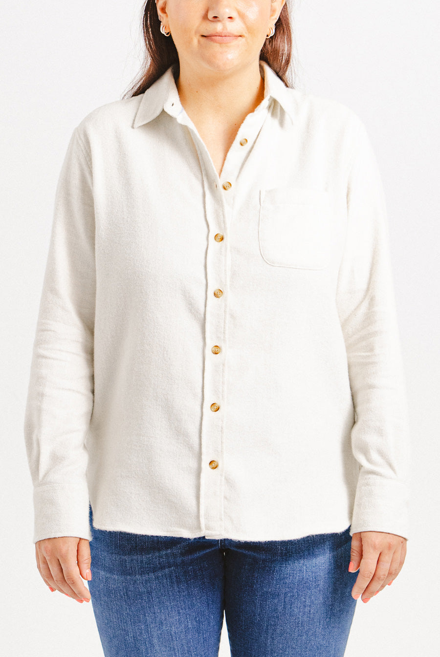 Our boyfriend fit shirts are cut to be slightly oversized. We recommend sizing down if you prefer a more streamlined look. See our fits explained.