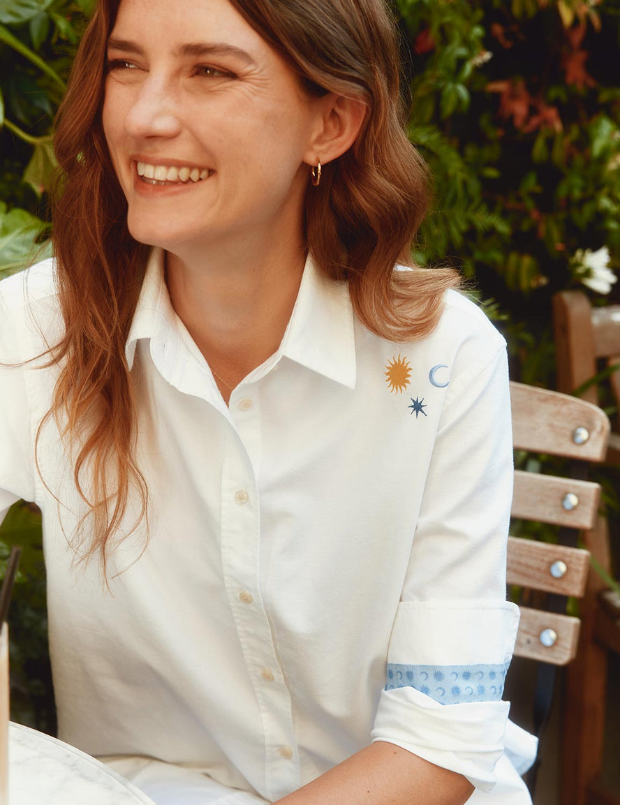 Known for her nature-inspired artistic aesthetic, Frankie has reimagined our iconic Beauchamp Oxford Shirts with two exclusive designs: the Beaufort & Blake x Frankie Penwill Sunflower Shirt and the Star & Moon Shirt.